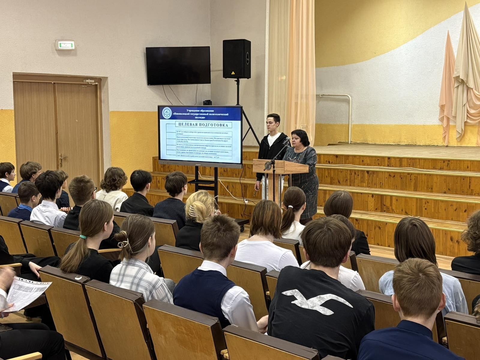 С приветственным словом к гостям обратилась заместитель директора Ольга Михайловна Петрусенко, а ответственный секретарь приёмной комиссии Ольга Станиславовна Шараковская рассказала о правилах приёма в 2026 году.